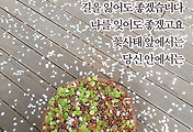 창가에는 작은 다육이 세 개가 나란히 놓여 있는데, 그 중 하나가 왠지 약간 시들해 보였다. 시무룩해 보인 것인지도 모른다. 꽃가게에서 들었던 대로 화분 받침대에 물을 담아 그 위에 화분을 올려 두었다.