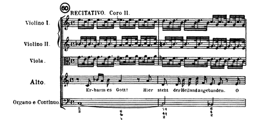 알토 솔로는 이어서 노래합니다. ‘Aber laßt es bei den Fluten, Wenn die Wunden milde bluten, Auch die Opferschale sein./내 마음이라도 흐르는 피의 곁에 있게 하셔서 그 상처에서 흐르는 거룩한 피를 보혈의 잔에 담도록 허락하소서.’