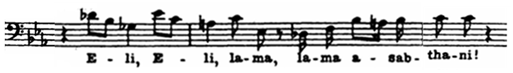 그런데 그렇게 하려면 한 가지 문제에 부닥치게 됩니다. 아람어 원문의 문장과 독일어로 해석된 문장의 음절 수에 차이가 있기 때문입니다. 해당 구절의 아람어는 “Eli, Eli, lama asabthani”이며 독일어는 “Mein Gott, mein Gott, warum hast du mich verlassen?”입니다. 한눈에 보아도 아람어 원문보다 독일어 문장이 길고 음절이 많음을 알 수 있습니다. 그 격차를 해소하기 위해서 바흐는 음절 수가 적은 아람어 원문에 ‘라마’를 한 번 더 반복시킨 것입니다.